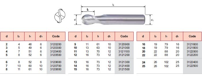 品名:信达M42加钴圆咀立铣刀-(312,337)